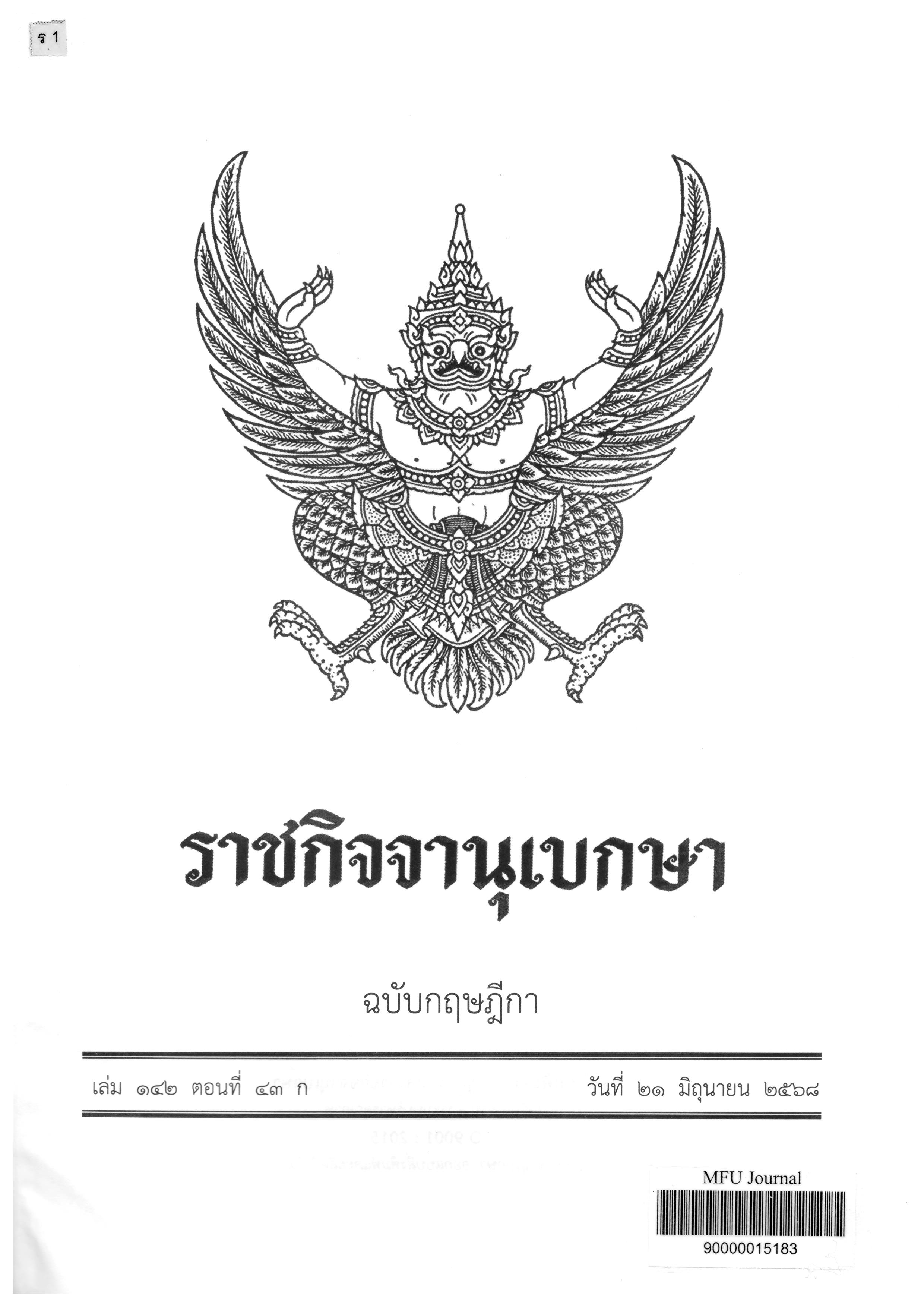 Journal Title ราชกิจจานุเบกษา : ฉบับกฤษฎีกา