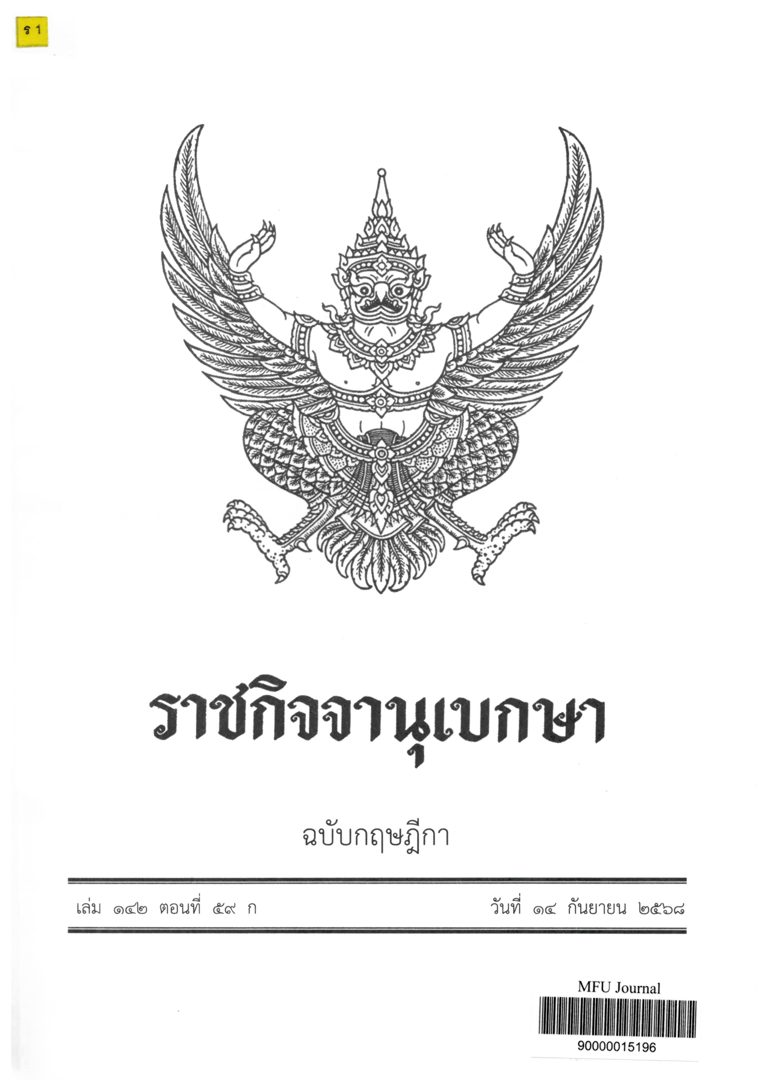 Journal Title ราชกิจจานุเบกษา : ฉบับกฤษฎีกา