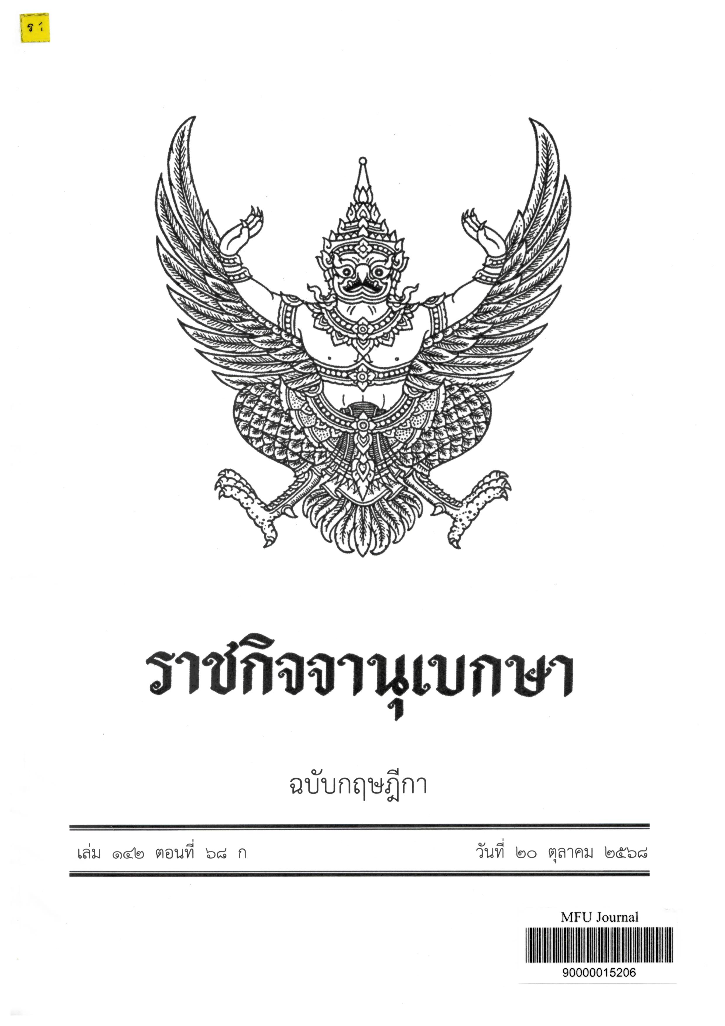 Journal Title ราชกิจจานุเบกษา : ฉบับกฤษฎีกา