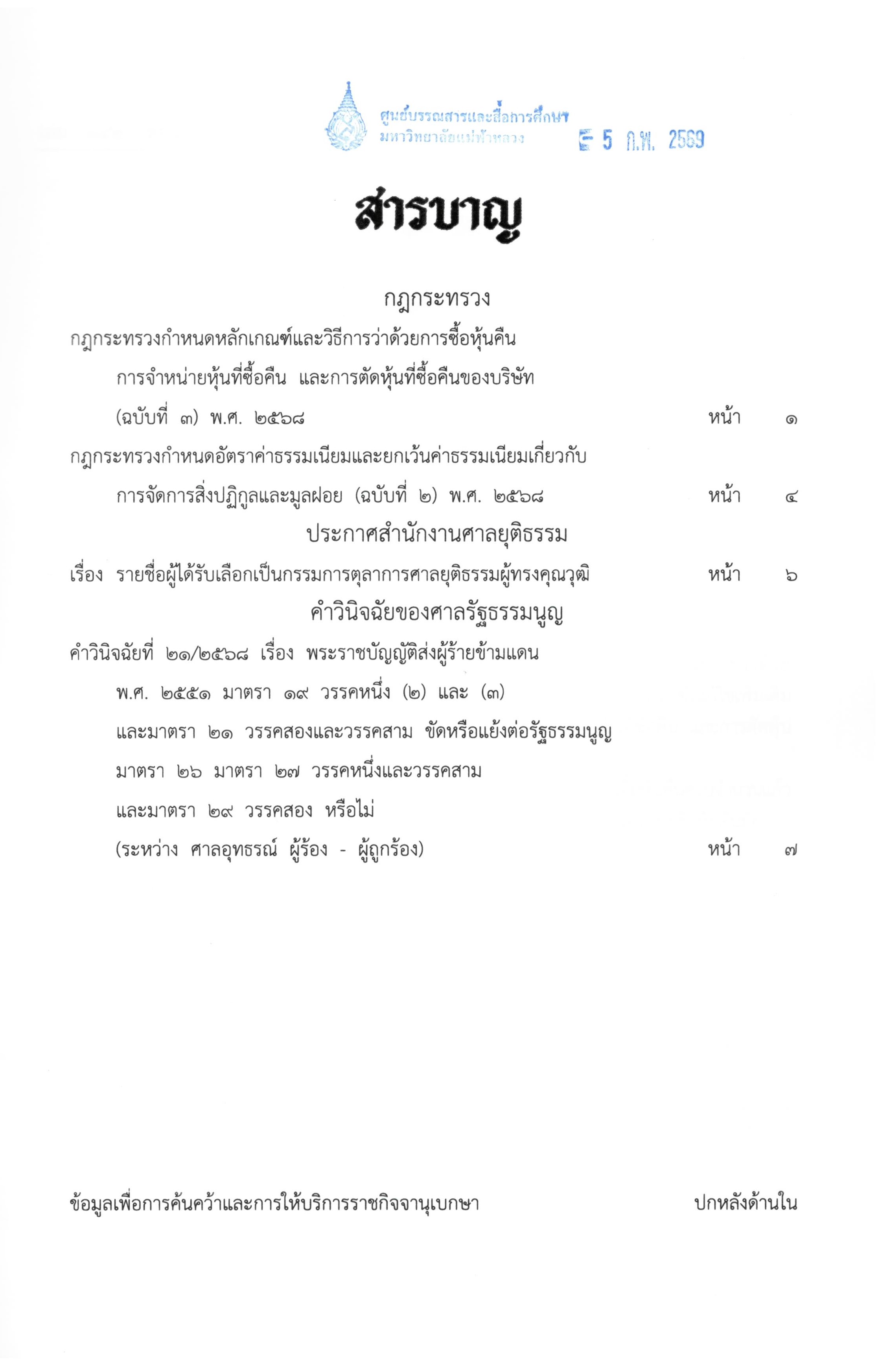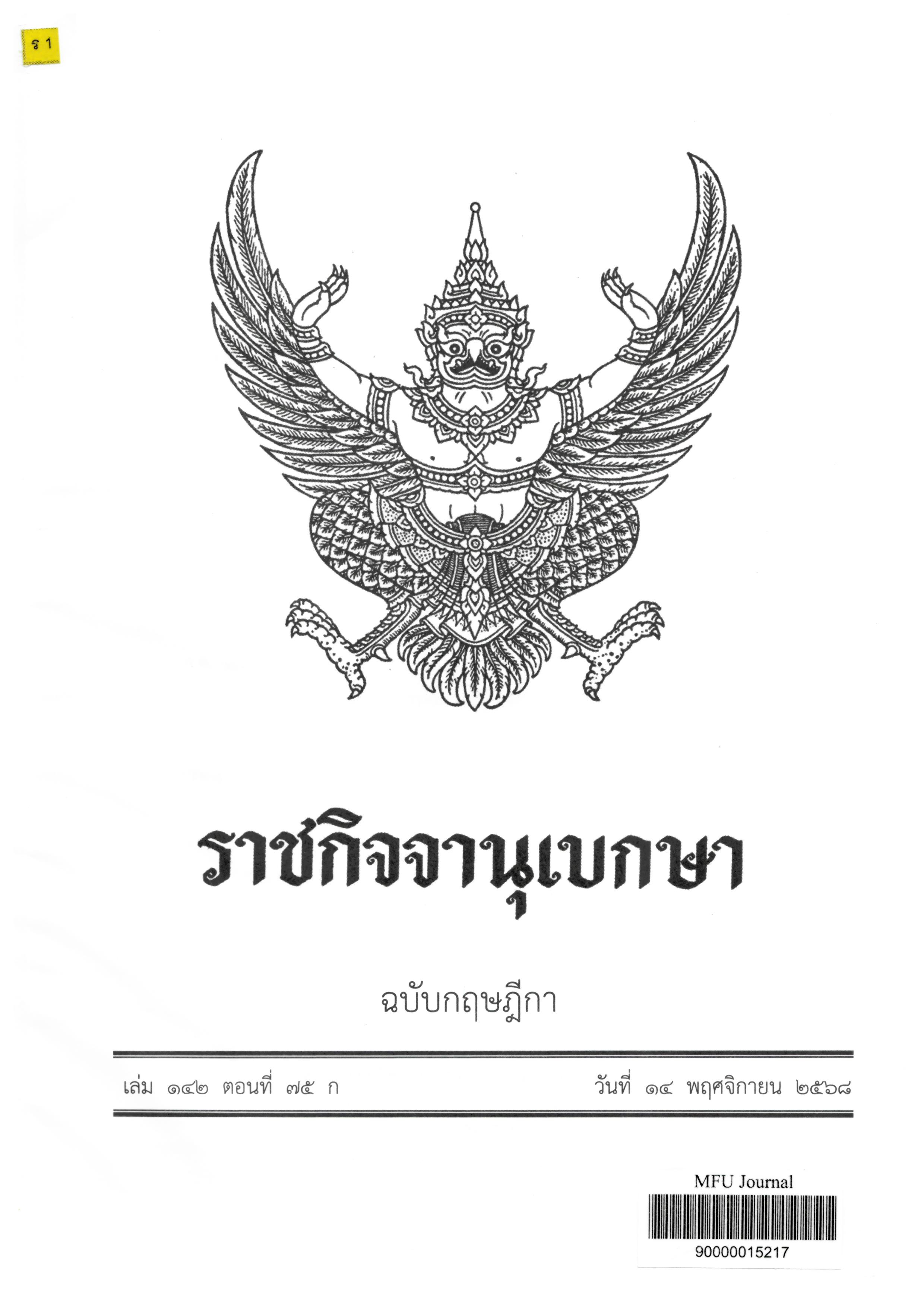 Journal Title ราชกิจจานุเบกษา : ฉบับกฤษฎีกา