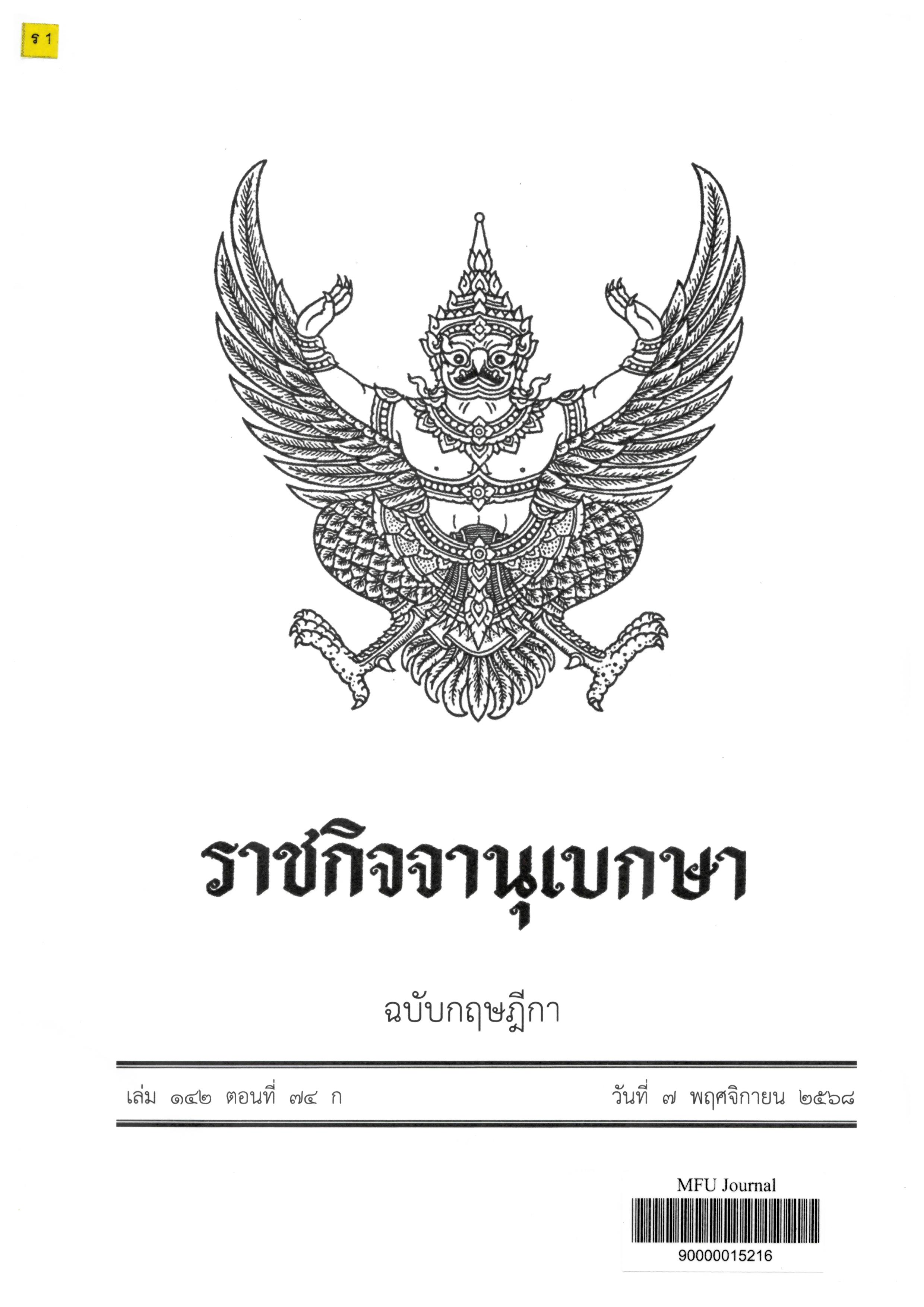Journal Title ราชกิจจานุเบกษา : ฉบับกฤษฎีกา