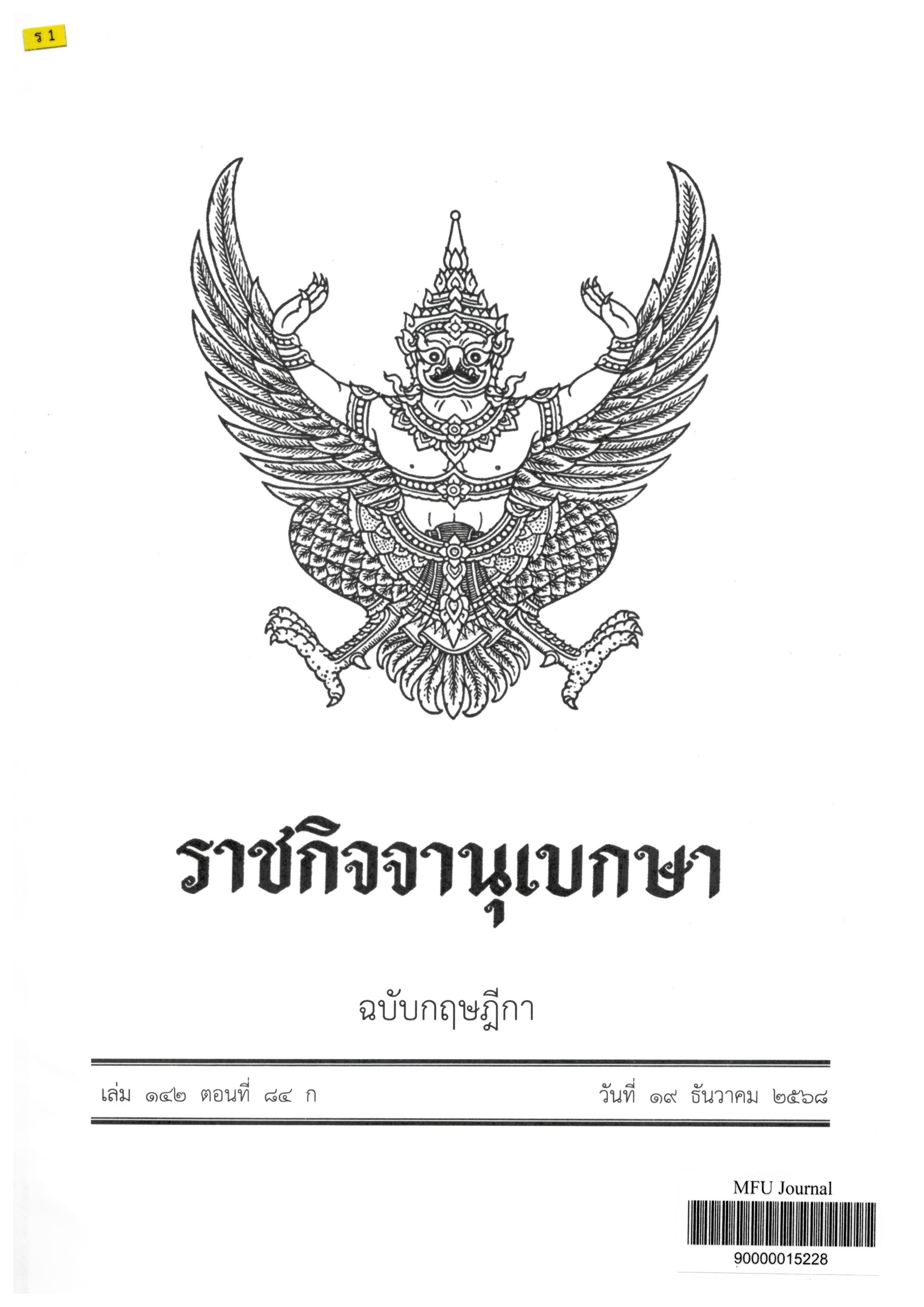 Journal Title ราชกิจจานุเบกษา : ฉบับกฤษฎีกา