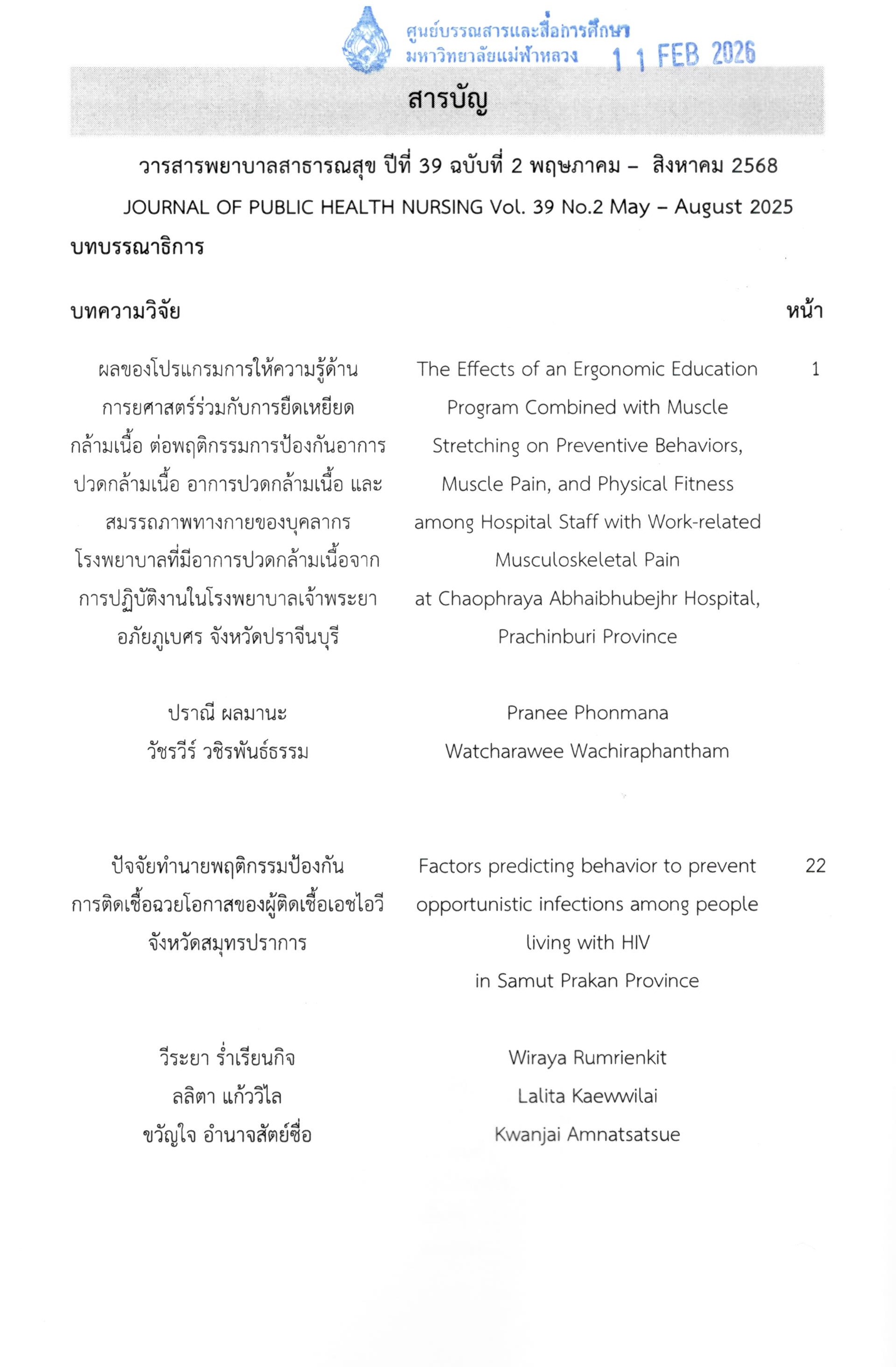 Journal Title วารสารพยาบาลสาธารณสุข