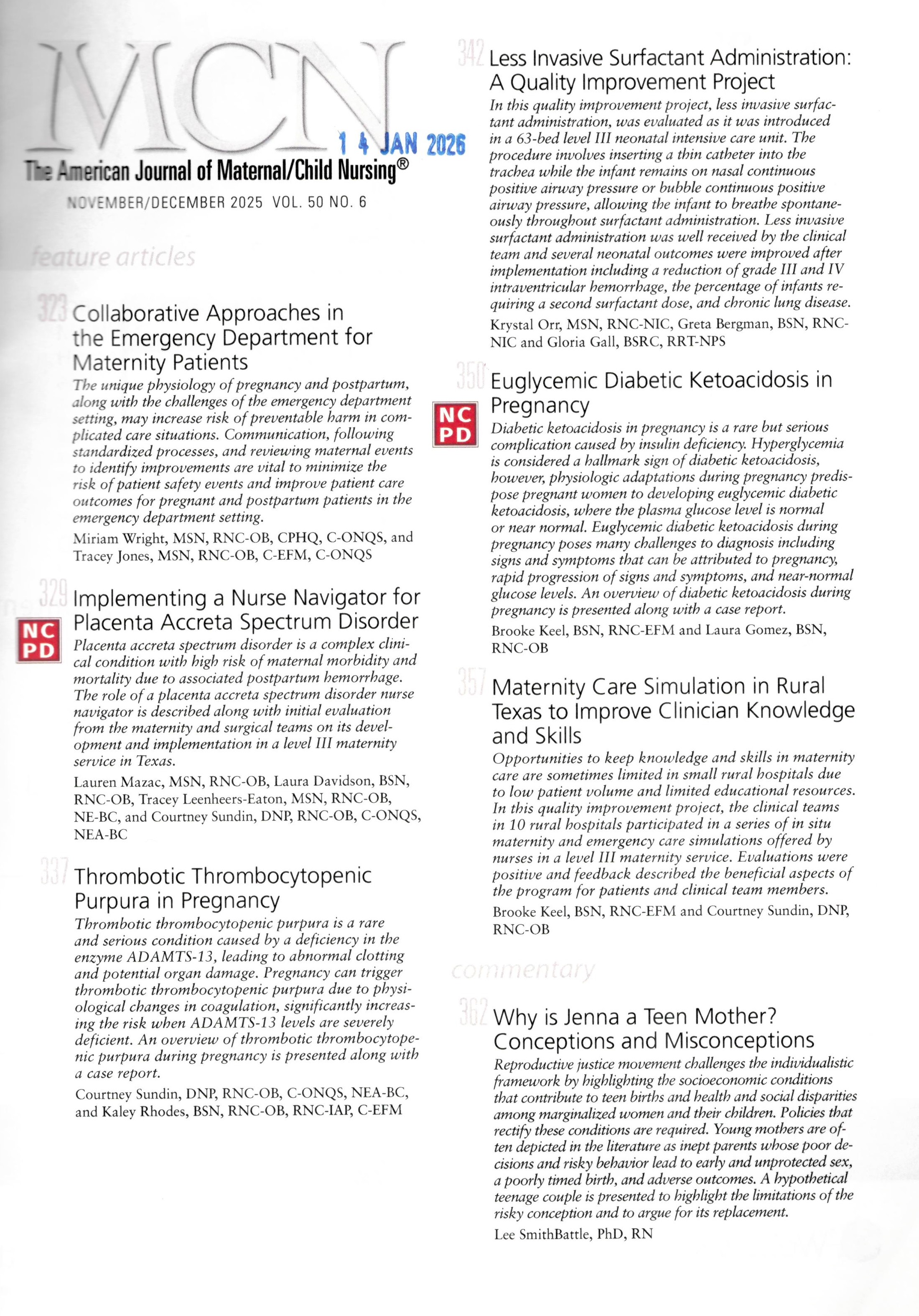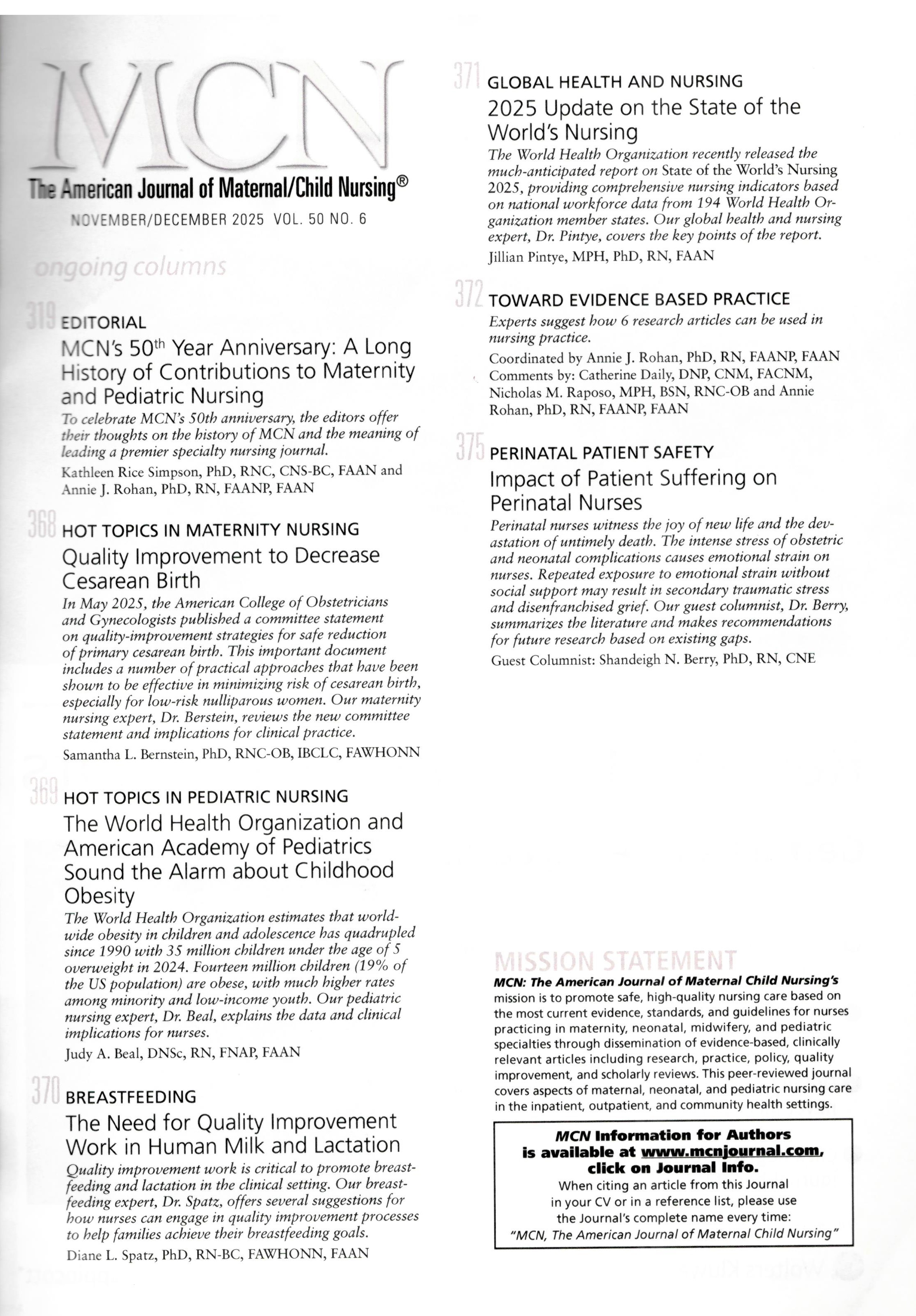 The American Journal of Maternal Child Nursing (November-December 2025)